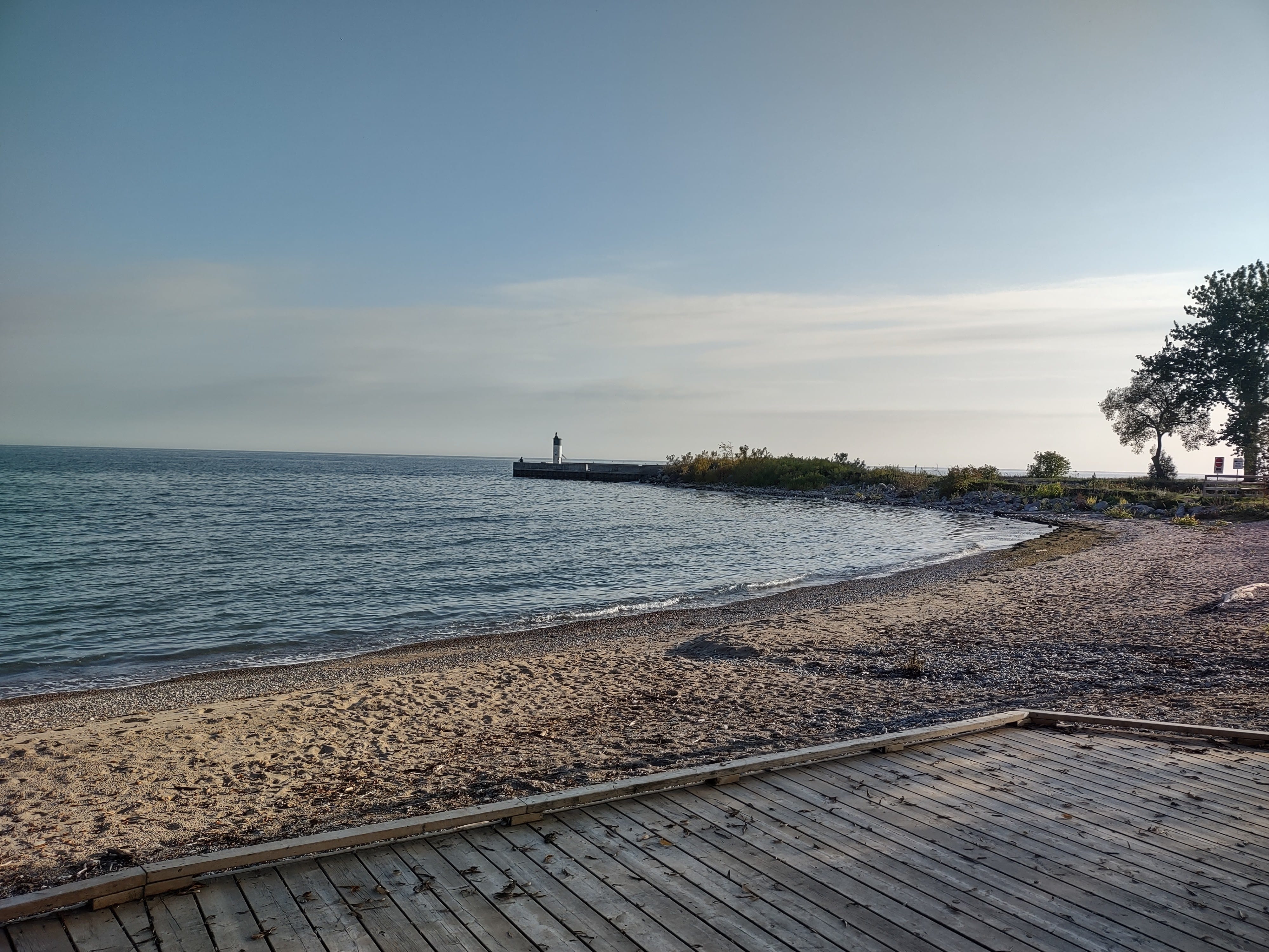 We took a few busy roads to Waterfront Trail. As we passed through a town on route, we tried to set up at the Port Hope Public Library and were surprised to discover that they serviced residents only. So much for public. We staged ourselves at Dreamers Cafe just down the street where we enjoyed some French music, coffee, lobster rolls, ice cream, and their famous Crazy Cookie (a chocolate chip cookie loaded with caramel, nuts, and more chocolate) at a sidewalk table. Camille chatted with a group of senior Dreamers dressed in biking attire. They were from Bowmanville (our destination for the night) and were on one of their many weekly bike rides. The joyful group had been biking together for a long time and were still kicking butt well into their seventies.