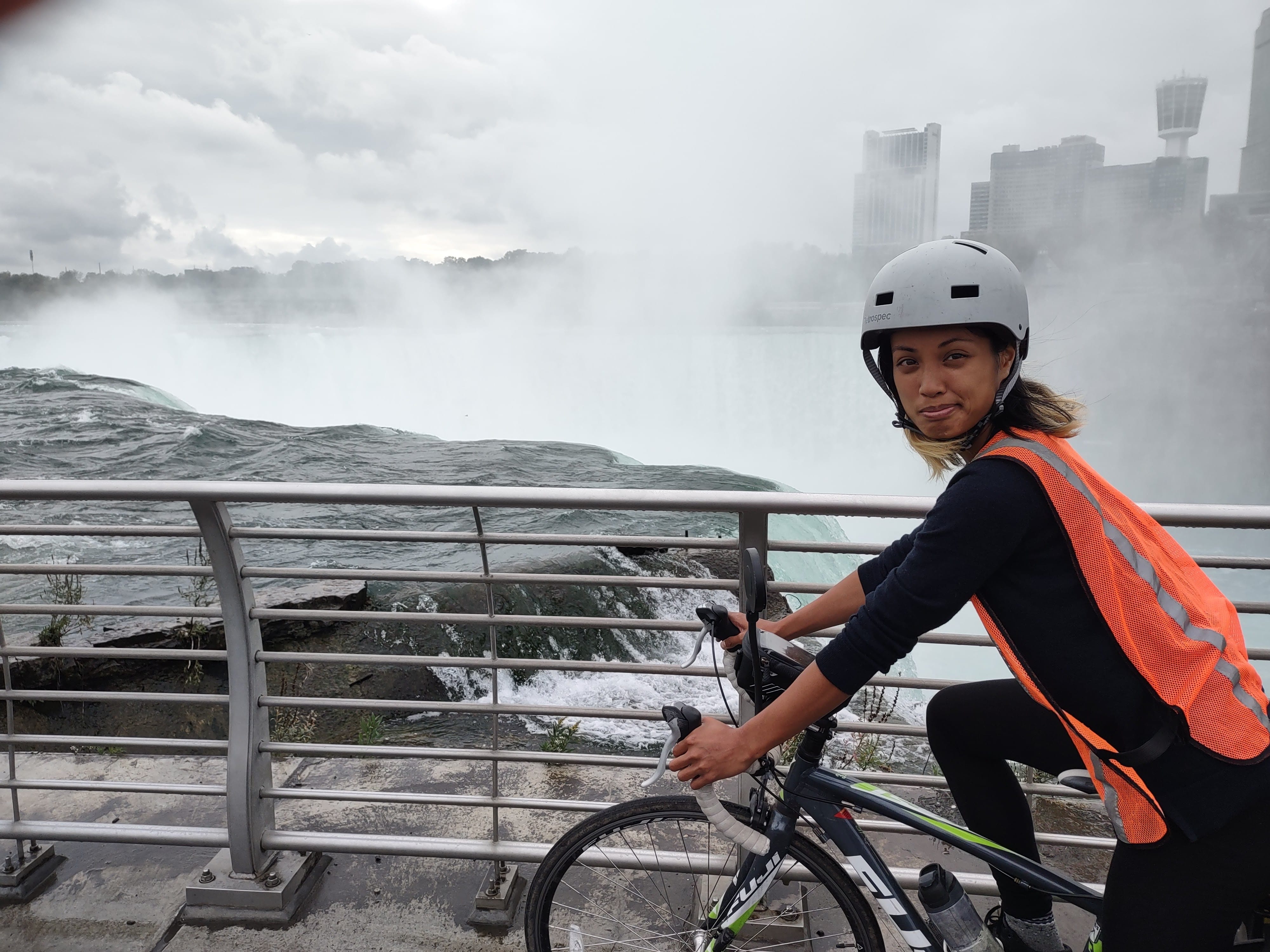We enjoyed the scenery following the Niagara River to Tonawanda and Buffalo. Our next hosts had provided directions that took us on some great trails, one of which was our beloved Empire State Trail! This would be our third time on it (first in Manhattan and then again in Rouses Point). It was smooth sailing until we ran into our first obstacle of the day: a bridge closure whose detour added a few more miles to route. No problem, we thought. Then the rascally flats began. Camille got a flat. Greg got a flat. Camille got another flat.